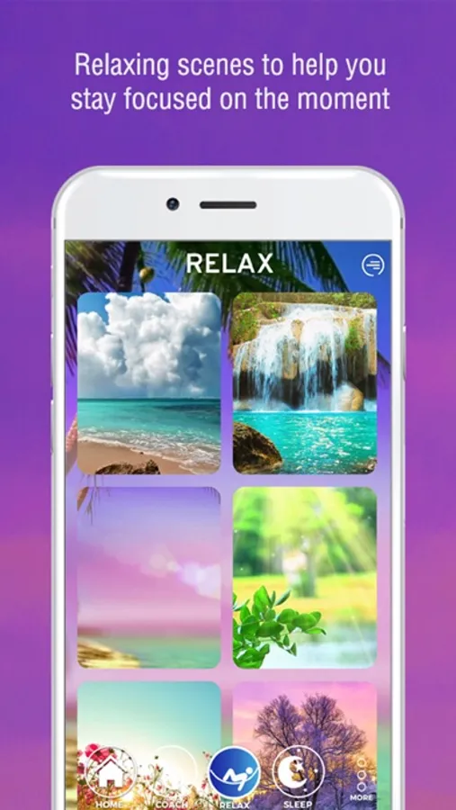 Successfully achieve mindfulness with ichoiceRelax by being coached to breathe at your ideal pace while interacting with heart rate-driven training and exercises.