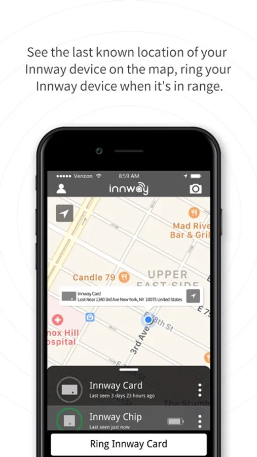 The Innway app records the time and location your Innway device disconnected from your phone. Navigate to the spot via the app to find your item.