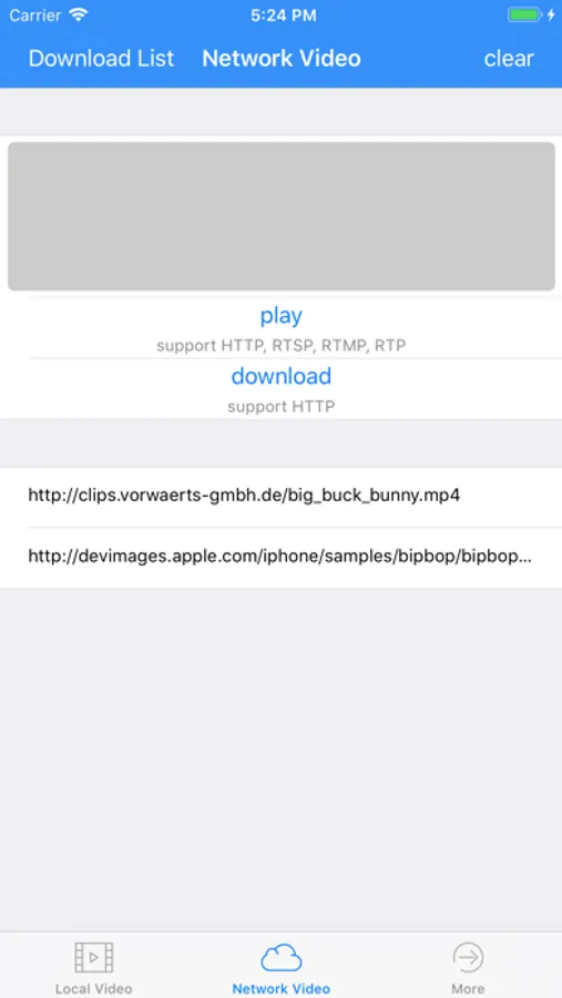 Enter any HTTP, RTSP, RTMP, RTP address play network streaming or live