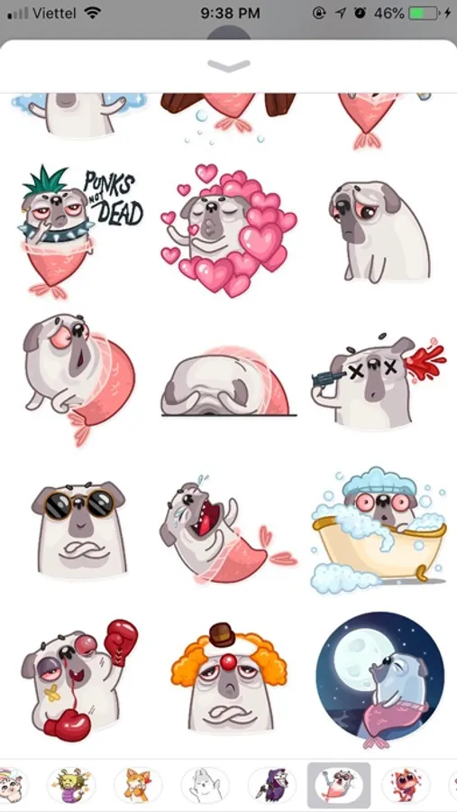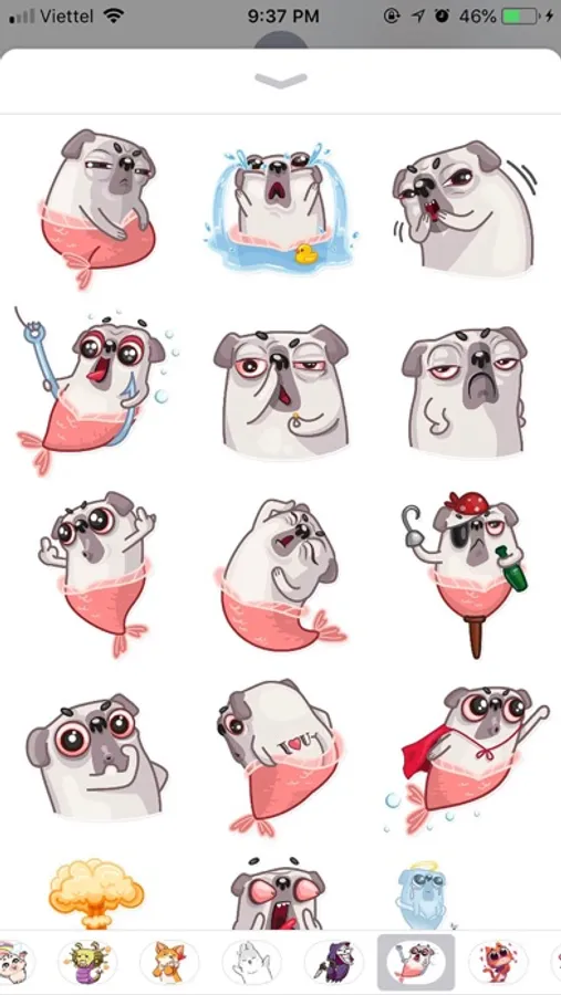 SET FULL WATER PUG DOG EMOJI PUN FUNNY STICKERS EMOTION PACK