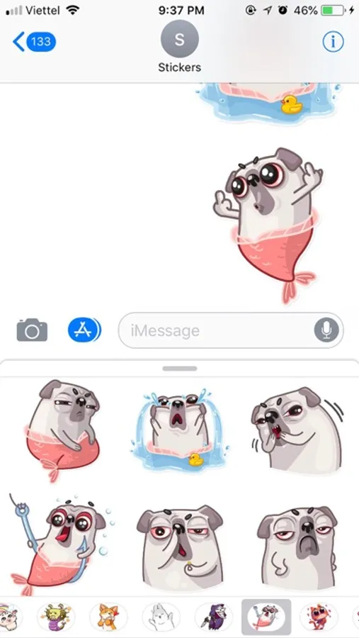 Water Pug Dog Pun Emoji Pun Funny Sticker with many type : emoji, bitmoji, memoji to help you make your chats in messengers even funnier