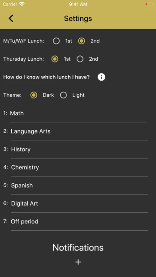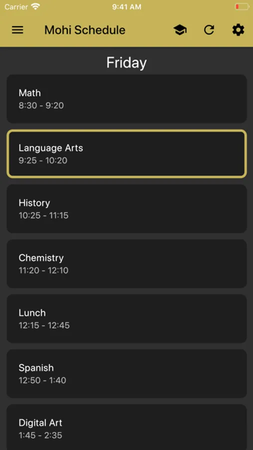 Monarch Bell Schedule is a simple app for keeping track of when your classes start and end at Monarch High School. You can customize it by naming each of your 7 periods, and changing which lunch you have. The app will highlight the current class based on your phone's clock.