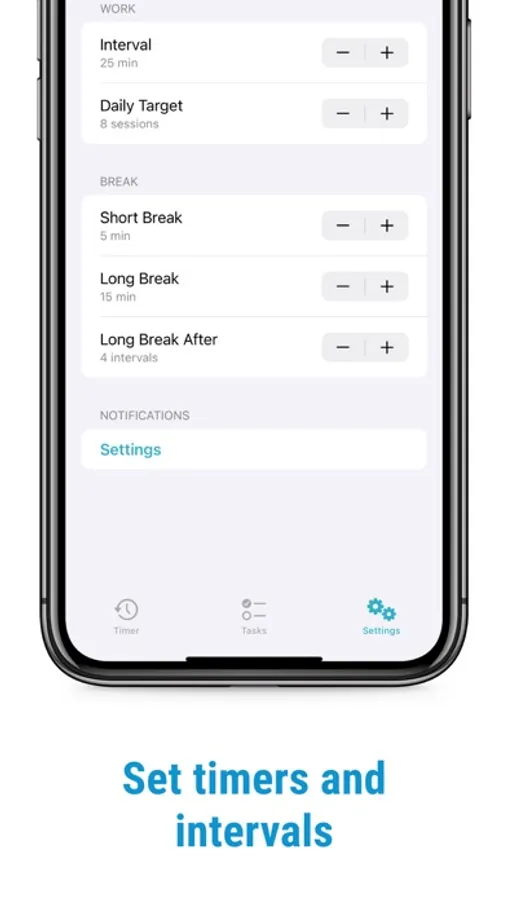 It allows you to choose the task you need to focus on and set timers that suit you.
