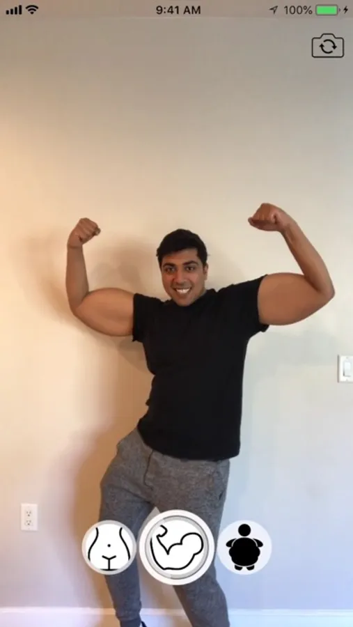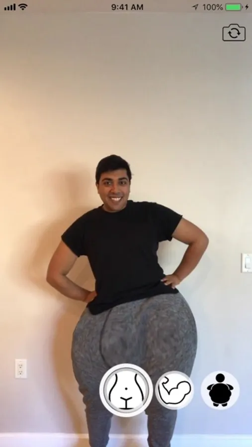 Swipe through to select big butt, big biceps, or over a dozen other filters.