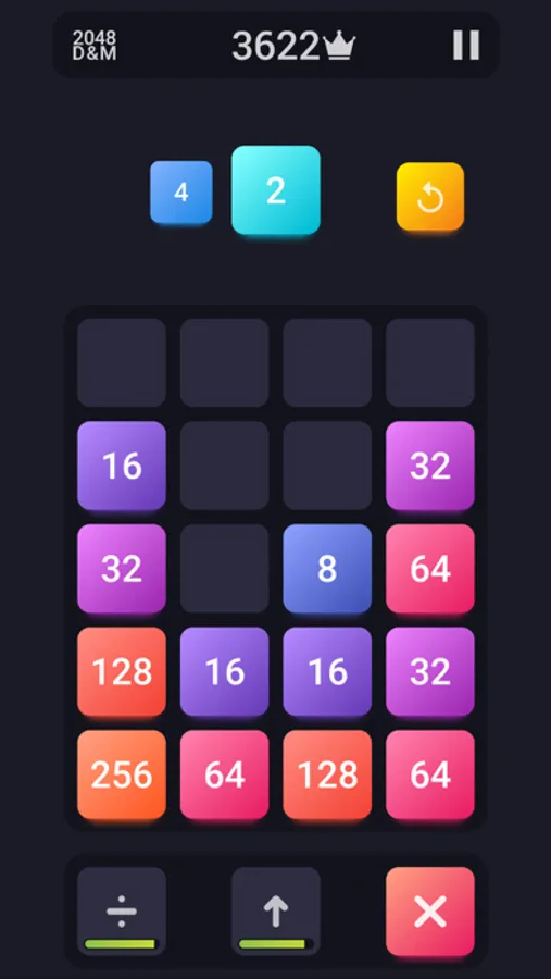 - Division: use this bonus to divide the number on the tile by 2. If you apply this bonus to tile 2, it will be removed, since this is the tile with the minimum number.