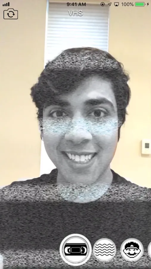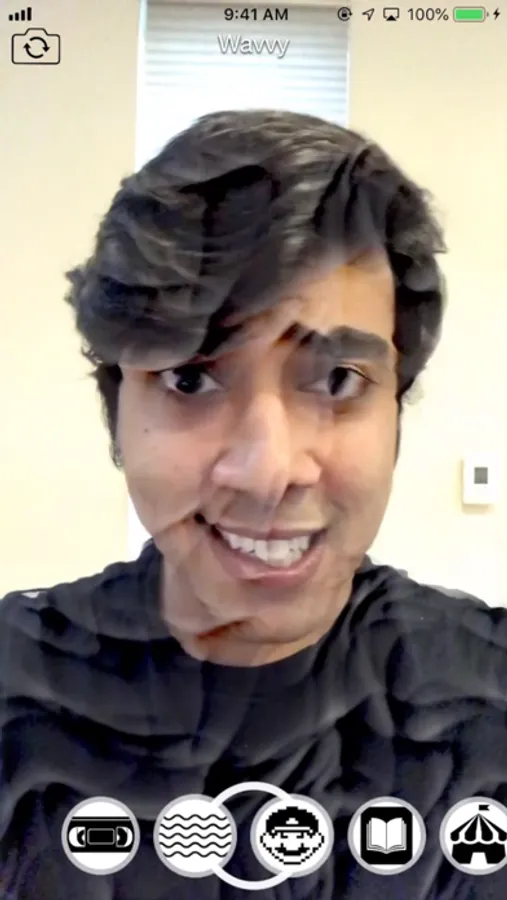 Swipe through to select VHS, Wavvy, or over a dozen other filters.