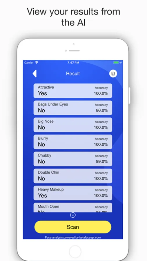 Face Traits utilizes AI technology to analyze your face for the traits you select in the app. Face analysis is supported by betafaceapi.com. The AI is trained on hundreds of thousands of faces and is quite accurate.