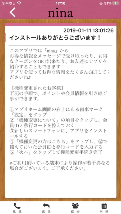 このアプリでは、ninaの最新情報の受け取りや便利な機能を使う事ができます。