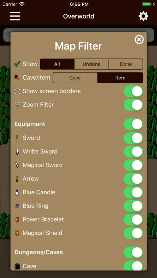Unofficial offline map for the classic The Legend of Zelda game. The map for the overworld currently features the locations of: