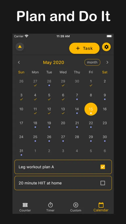 • Calendar and Notification Feature: Use the calendar and notification function to plan your workouts in advance.
