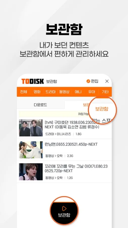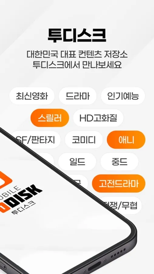 최신영화, 드라마, 동영상, 애니 등을 즐기는 투디스크 다운로드 전용앱 입니다.