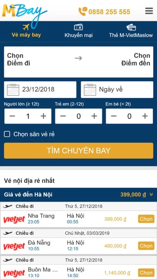 Mbay.com.vn là một trong những website hàng đầu về đặt chỗ, book vé máy bay trực tuyến của tất cả các hãng hàng không trên thế giới. Với công nghệ tiên tiến và độc đáo bạn có thể dễ dàng săn vé giá rẻ, tìm kiếm chuyến bay, đặt vé máy bay nội địa và quốc tế, so sánh giá vé giữa các hãng mà không phải mất nhiều thời gian tìm kiếm trên hàng chục website khác nhau.