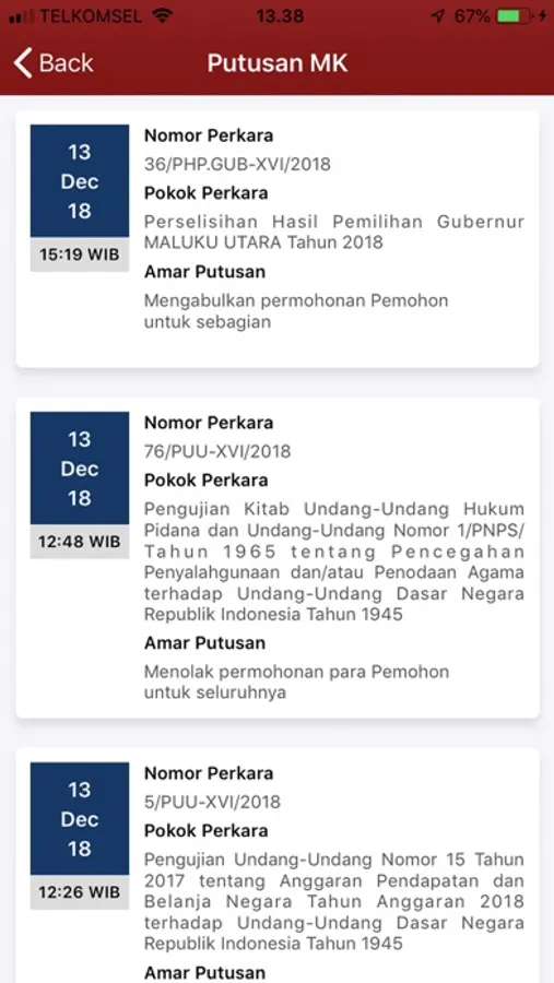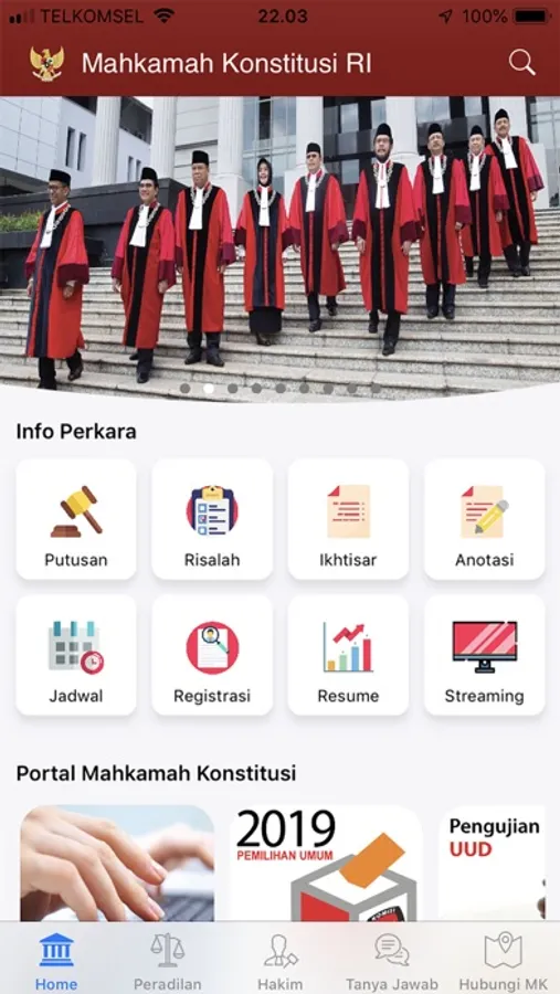 Click MK Mahkamah Konstitusi RI bertujuan untuk memudahkan para pencari keadilan maupun yang sedang berperkara di MK. informasi yang disediakan sama persis seperti website resmi Mahkamah Konstitusi, termasuk didalammnya terdapat live streaming sidang.