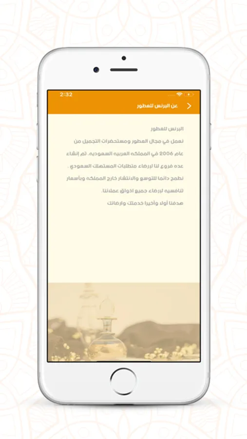 نعمل في مجال العطور ومستحضرات التجميل من عام ٢٠٠٦ في المملكه العربيه السعوديه. تم إنشاء عده فروع لنا لإرضاء متطلبات المستهلك السعودي . نطمح دائما للتوسع والانتشار خارج المملكه وبأسعار تنافسيه لإرضاء جميع اذواق عملائنا.