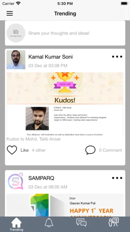 Employees can see posts on app posted by the organization and they like and comment on that.