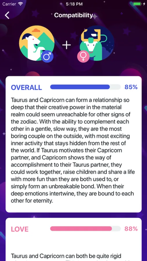 - Horoscope compatibility (overall, love, value)