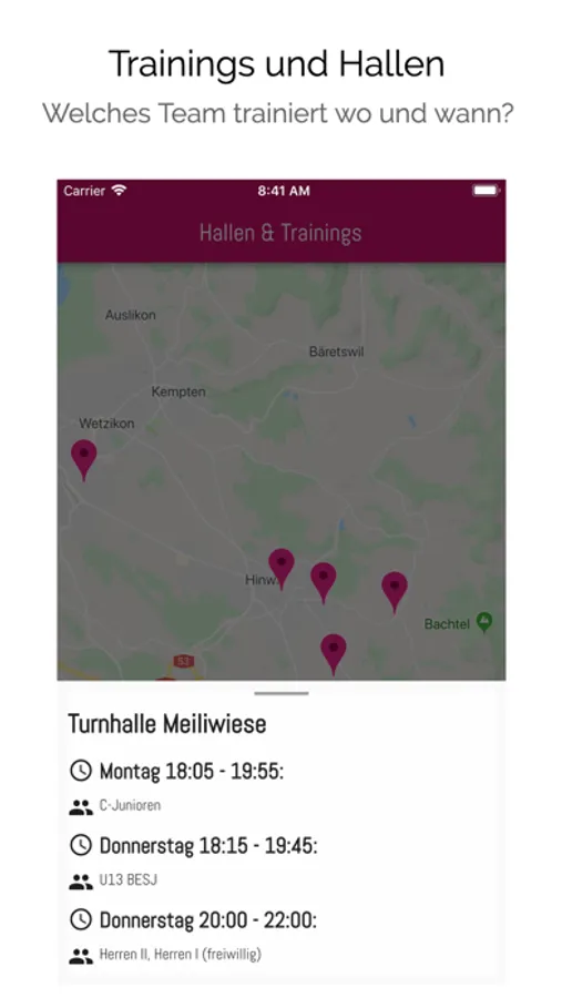 Sieh dir die Trainingszeiten aller Teams an und erfahre, in welchen Turnhallen in der Region welches Team trainiert.