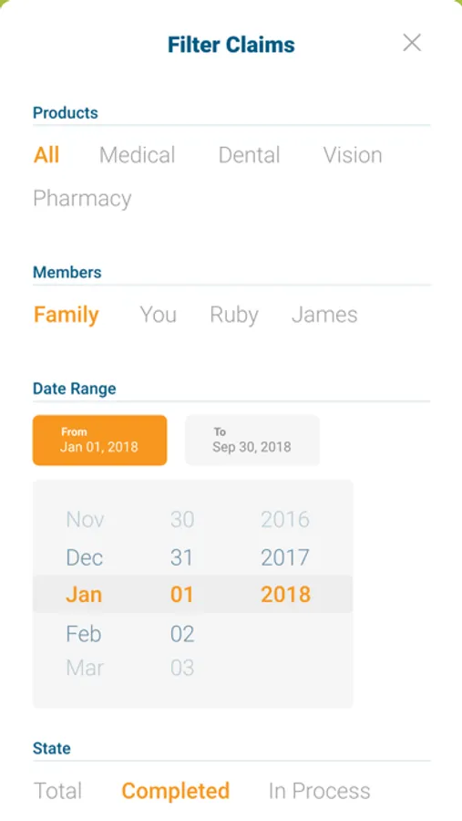 View all claims in real-time for an easy understanding of your claim journey! You can also filter by a specific date range or status.