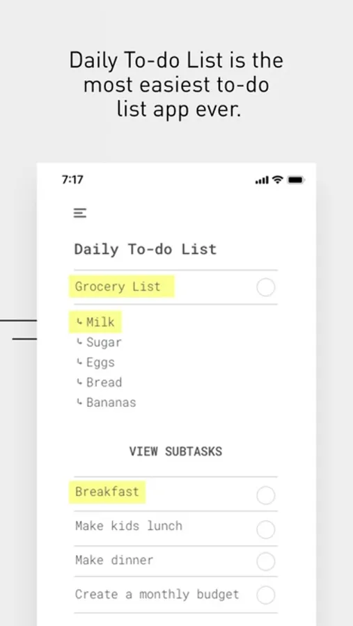 We built Daily To-do List and removed all the noise. One list to focus on today's task. Check off your tasks when complete, then view your accomplishments at the end of the day. That's it.