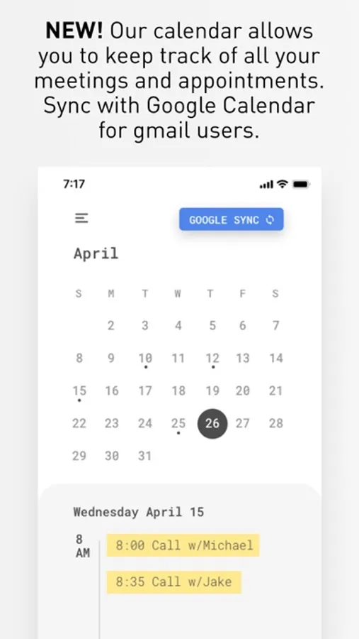 Create events for meetings and appointments. These tasks will show at the top of your list for that day. Integrate with google calendar for Gmail users.