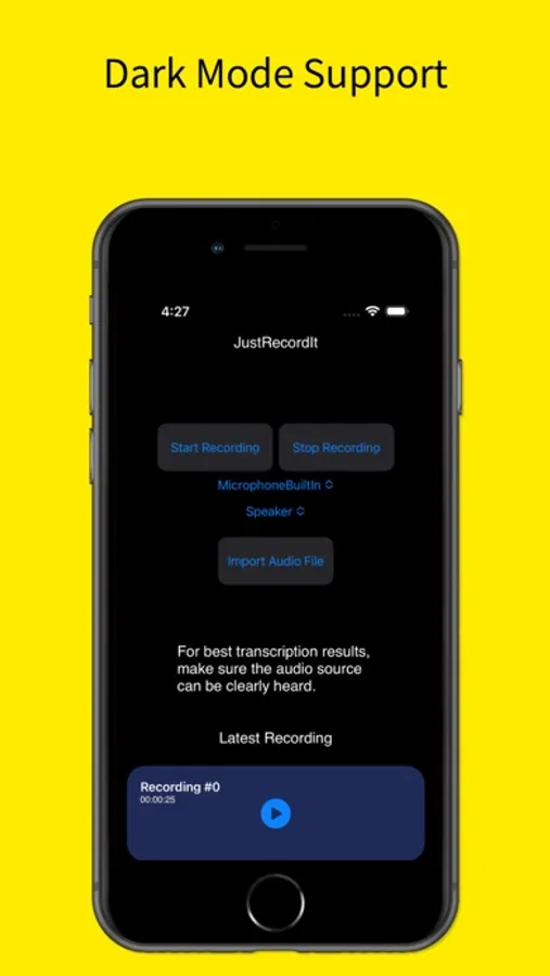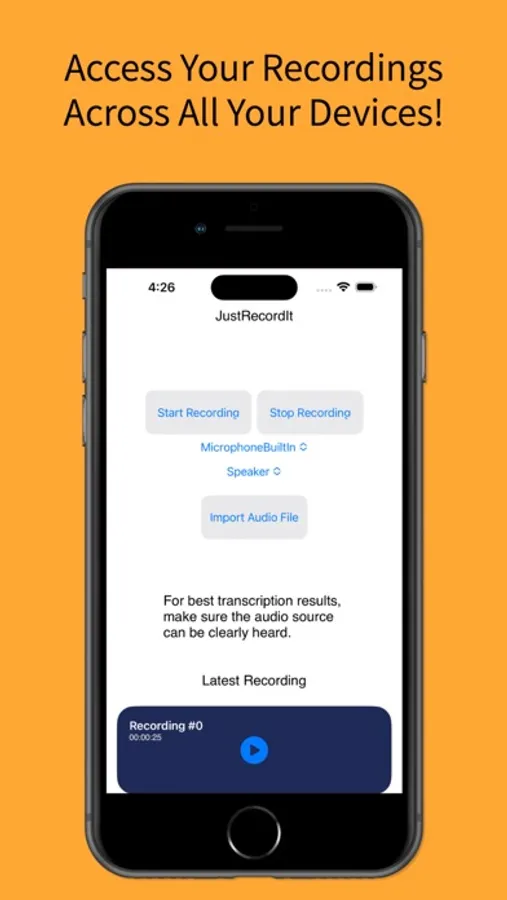 JustRecordIt is your go-to choice for mobile Audio Recording. Import recordings from any source or location effortlessly. No matter where your audio files are stored, our app ensures you have easy access to them for further editing or playback.
