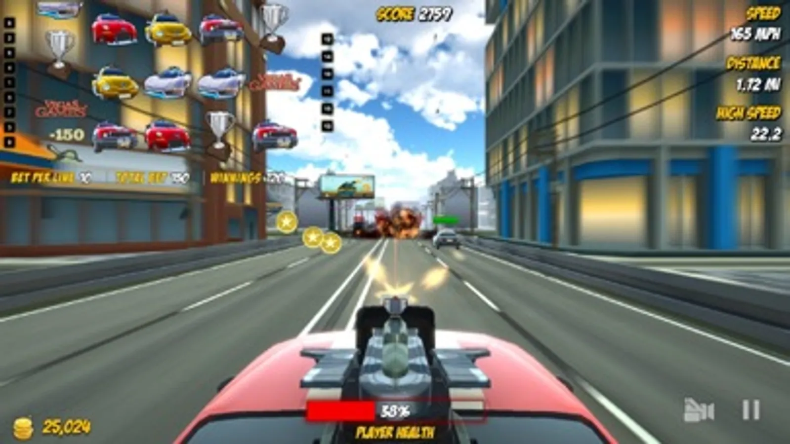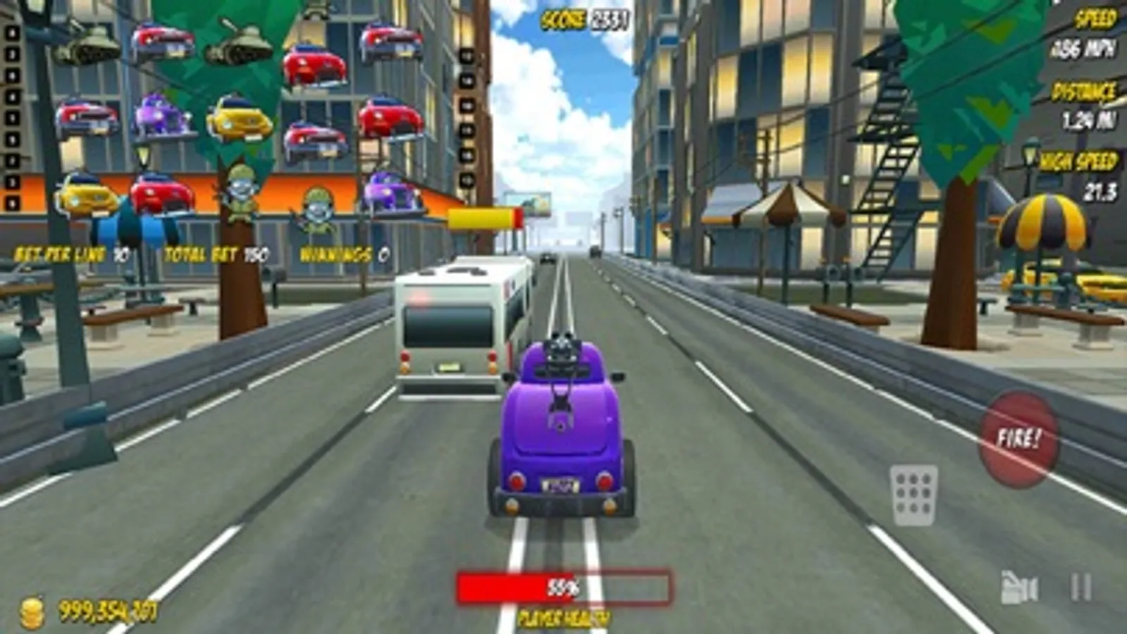 Use your skills to blast enemy spy trucks and spin the slot machine so that you can win big to get the meanest, fastest cars with all the upgrades!