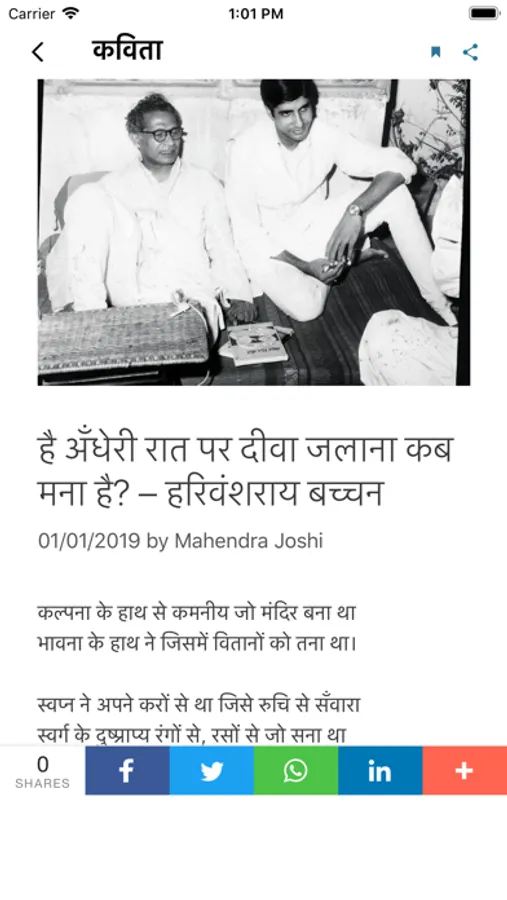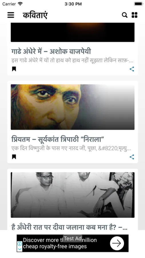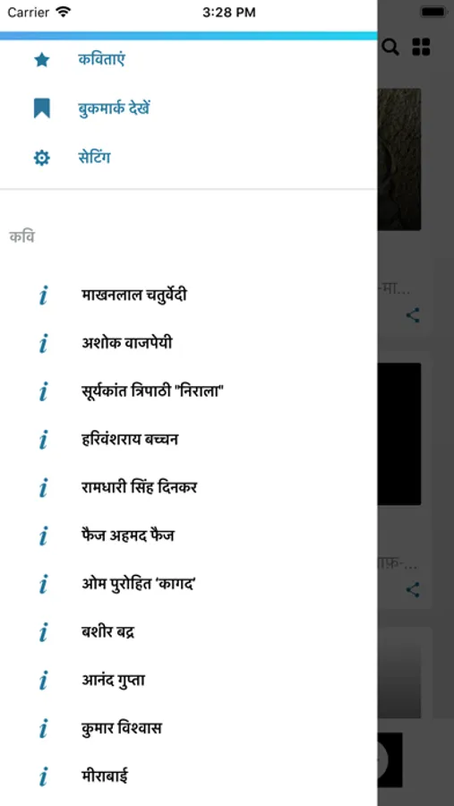 Kavyadhara is an app for Hindi Kavita (Poetry) and poem Lovers. This app contains poems from well-known & famous names of Hindi Poetry.