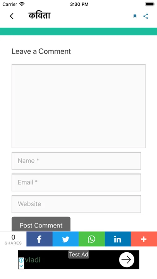 6) Option to share the poem via SMS, Whatsapp and Other Social Apps like Facebook, Google+