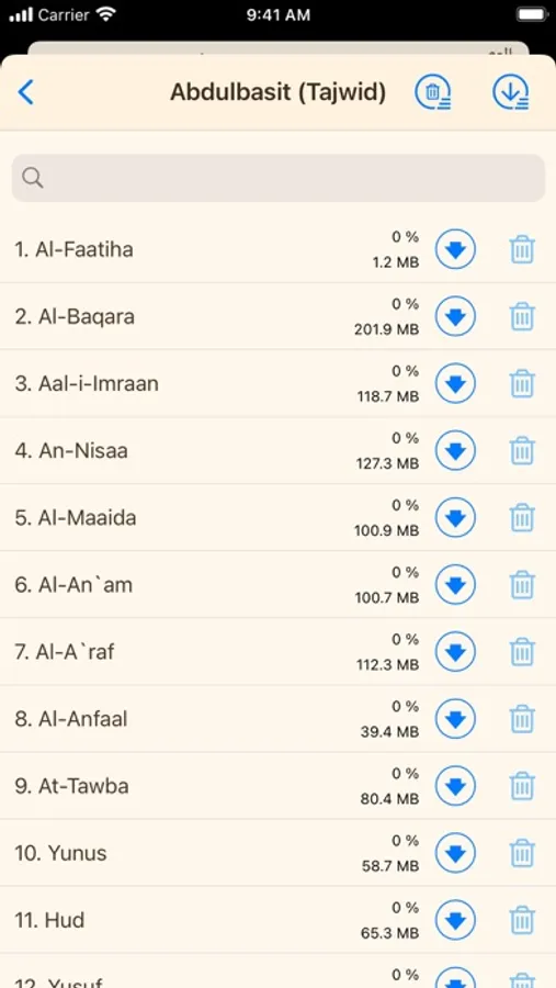 • Sharing audio files (Recitation and Audio Translation) on social media