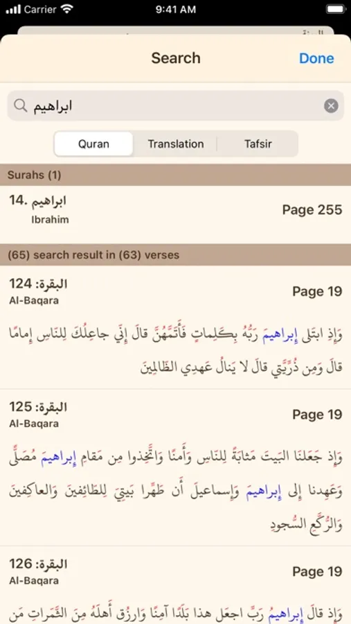 • Translation of each verse in English by Abbas Sadr-Ameli