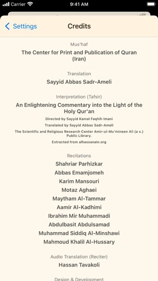 • Exclusive English audio translation (Sadr-Ameli), verse by verse