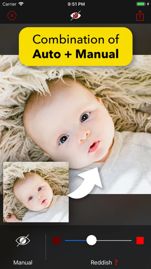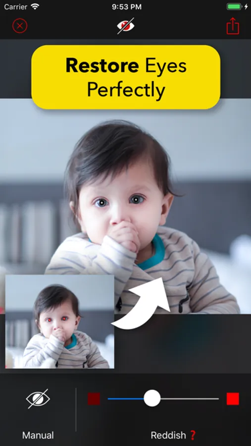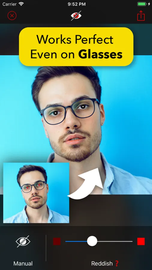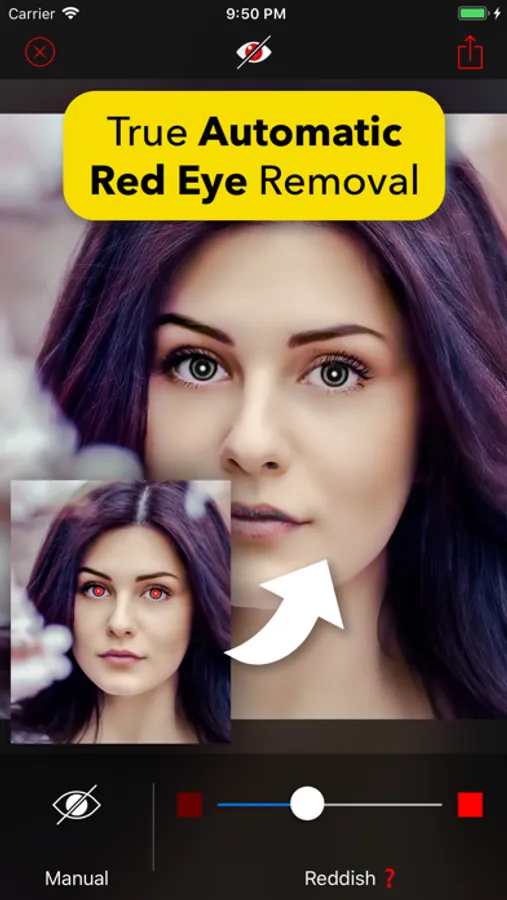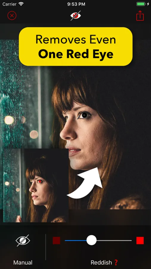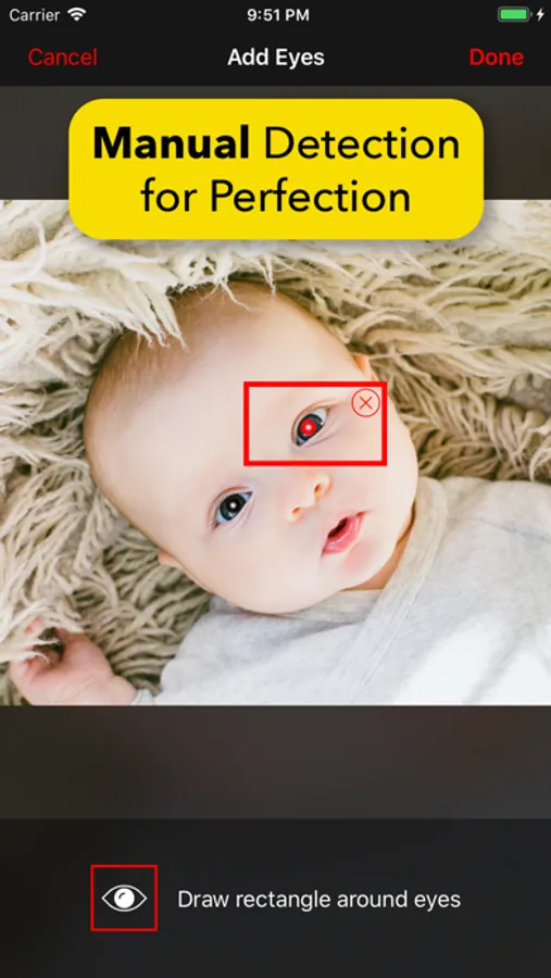 Unlike other apps which support only simple red eye removal, this app supports 3 methods of red eye detection and removal.