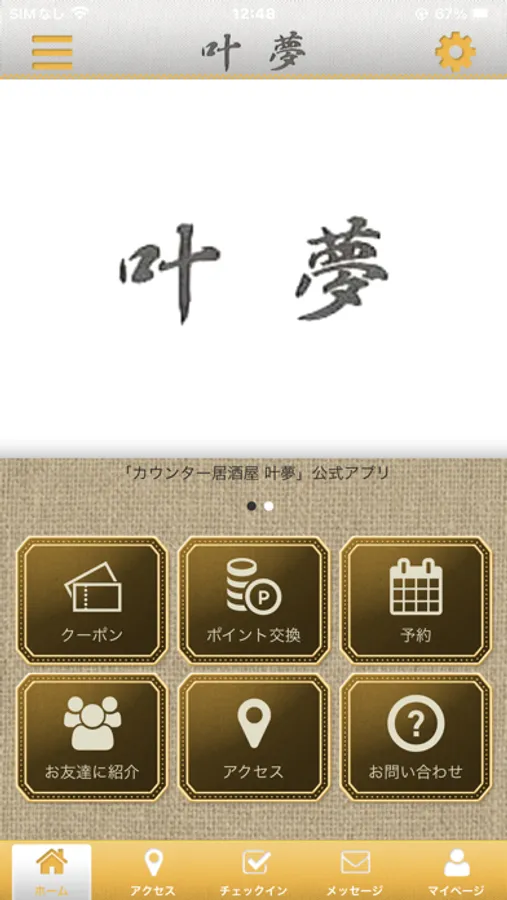 このアプリでは、カウンター居酒屋 叶夢の最新情報の受け取りや便利な機能を使う事ができます。
