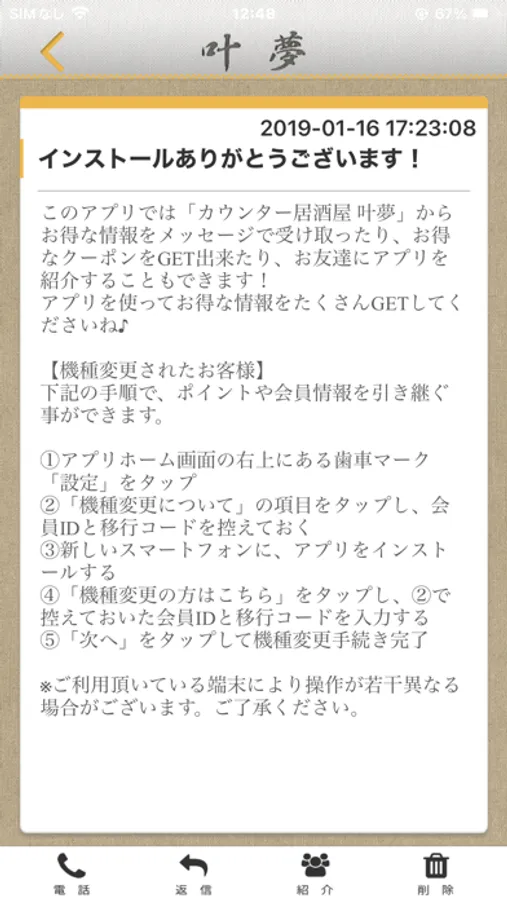 カウンター居酒屋 叶夢のアプリをSNSを通じてお友達に紹介する事ができます。
