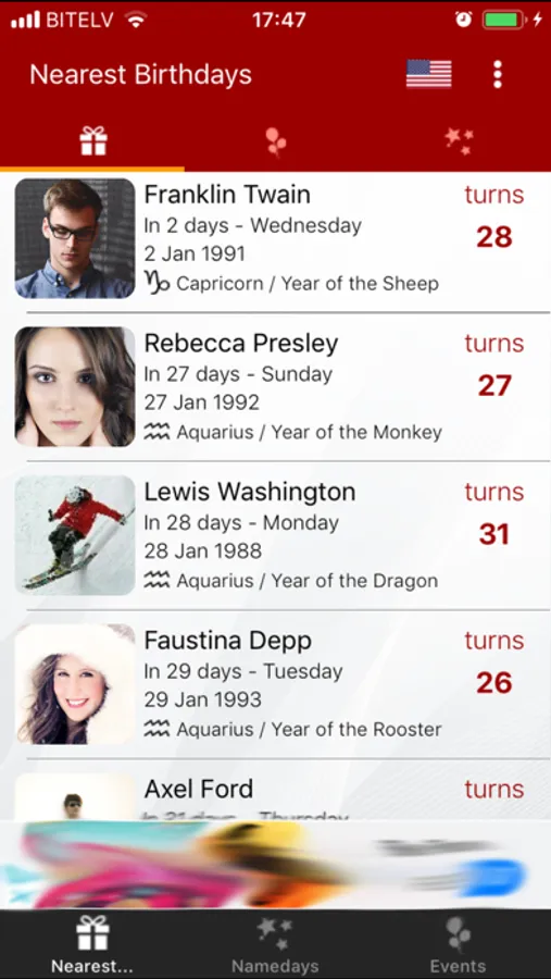 With this application you will never forget any of your friend's birthdays/namedays and upcoming important dates again. App have elegant user interface and supports multiple calendars: Austria, Bulgaria, Croatia, Estonia, Finland, France, Germany, Greece, Hungary, Italy, Latvia, Lithuania, Poland, Russia, Slovakia, Sweden, Ukraine, United States.
