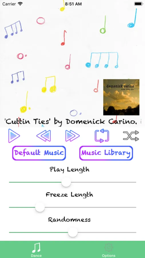 Team Freeze can be customized to how you want to dance. Easy to access sliders allow you to adjust the average length of the time that music is played or paused. More advanced options can also be accessed from the options screen.