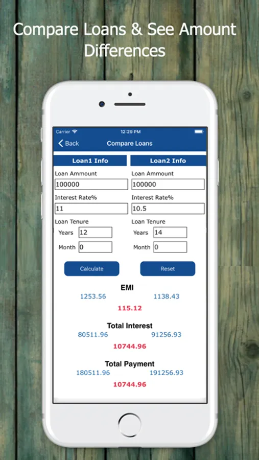 Compare Loan ==> you can compare two different loans and see the amount differences between two loans..!