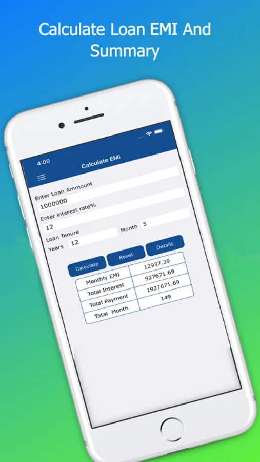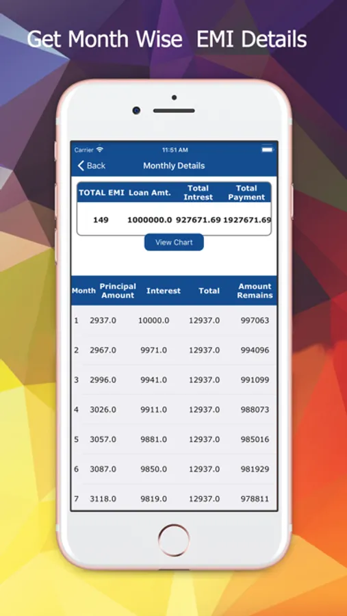 -you can view total amount, total Interest, monthly EMI, number Of EMI etc..