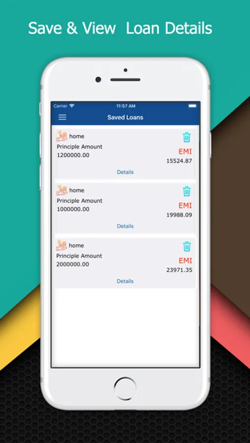 Save Loan ==> you can save the loan detail like amount, interest, tenure, processing fee, etc.. for Future Review..!