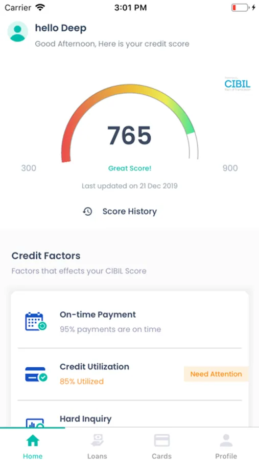 Check your Cibil Score for Free using the this app. It's a must have for anyone looking to track and improve their Credit Health.