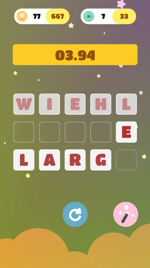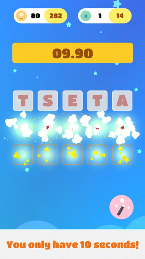 Find the hidden words against the clock! Only 5 letter words, only 10 seconds to find each word! How many words will you find before the time is up?
