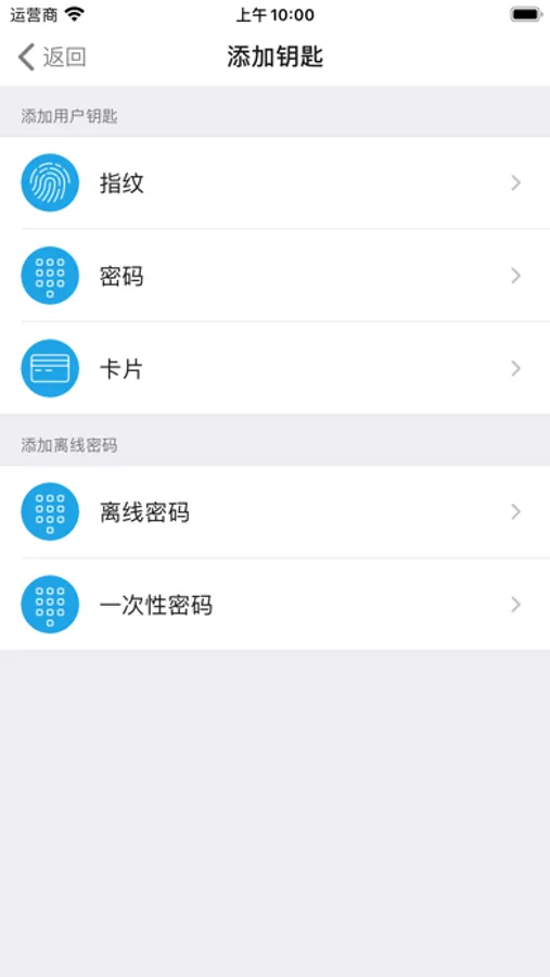 3. 支持授权用户开锁,添加指纹、密码、卡片、离线密码、一次性密码等;