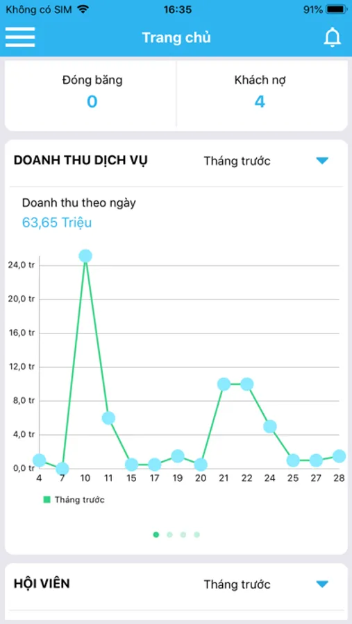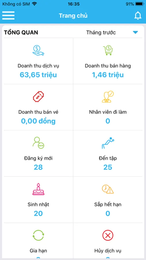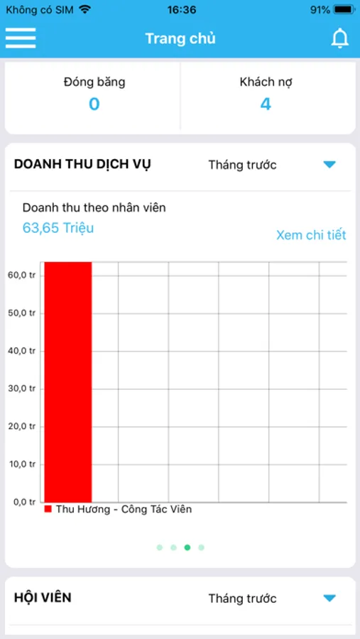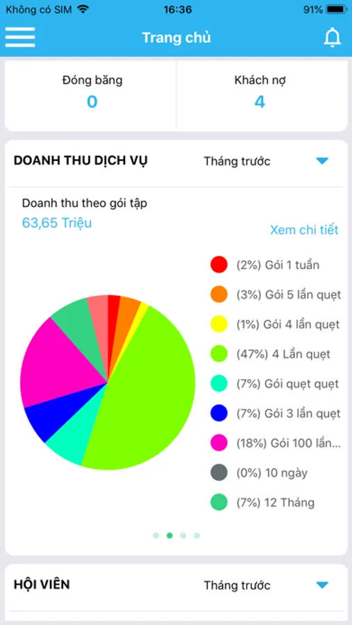 Báo cáo hội viên: khách hàng đang tập, khách hàng đăng ký mới, gia hạn gói,…