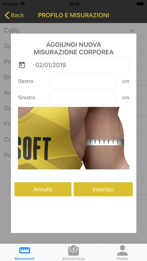 Potrai inserire le tue misurazioni corporee in modo autonomo, e un planning ti aiuterà a monitorare le misure inserite e allenamenti svolti.