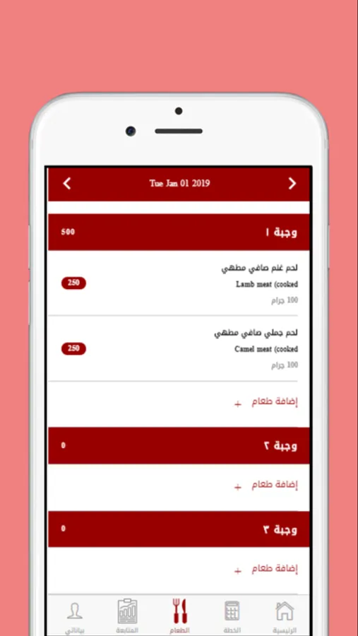 بالأضافة لقسم خاص لتسجيل السعرات اليومية