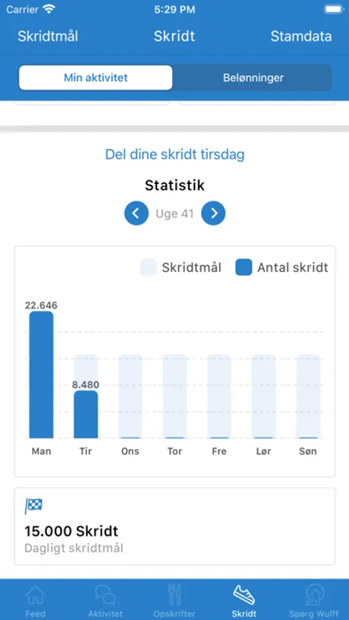 Man har også sin egen skridt funktion, herinde kan du konkurrer med de andre medlemmer og her er der lækre belønninger på højkant hver uge! Du kan følge din fremgang og udfordre dig selv med vores Start/stop funktion som tester hvor mange skridt du kan gå på tid. Det handler om at få pulsen op!