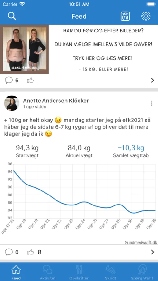På tidslinjen har du mulighed for at lave opslag og chatte med de andre medlemmer, samt chatte med Wulff personlig træner og hans team, som dagligt sidder klar med støtte, support og motiverende opbakning.