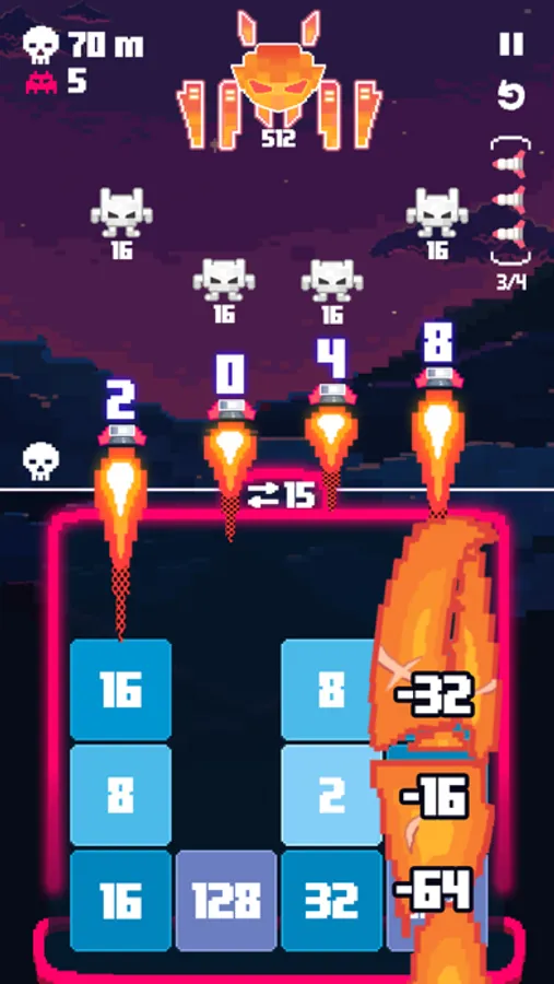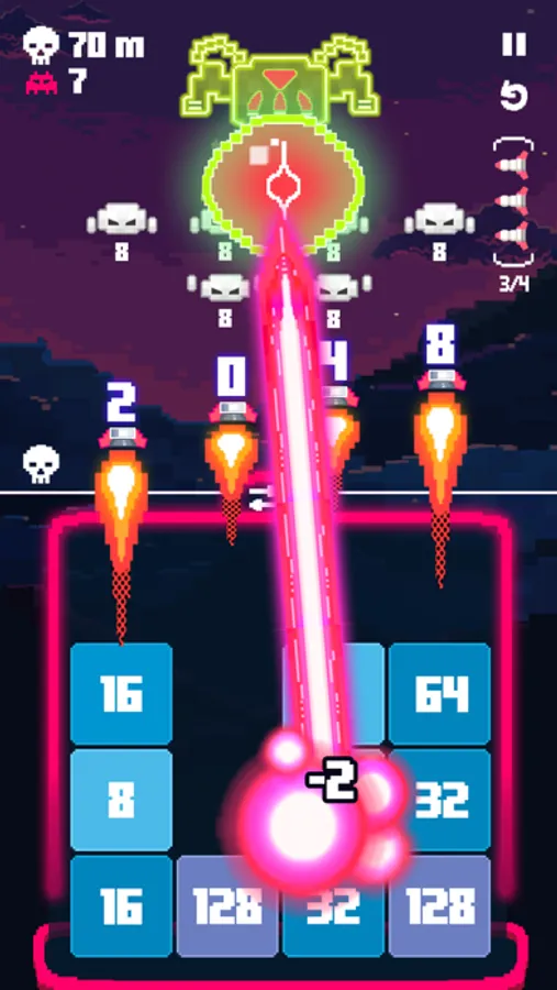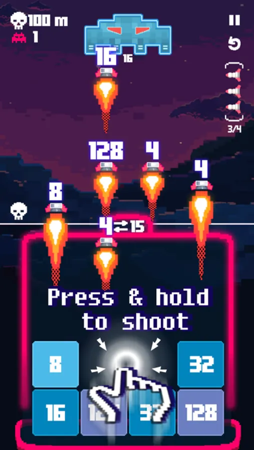 Merge the same blocks to build higher missiles and experience new invaders on the way.