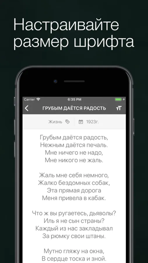 Настроить размер шрифта - легко! Настройте размер шрифта и читайте стихотворения Сергей Есенина на расстоянии вытянутой руки и даже без очков.