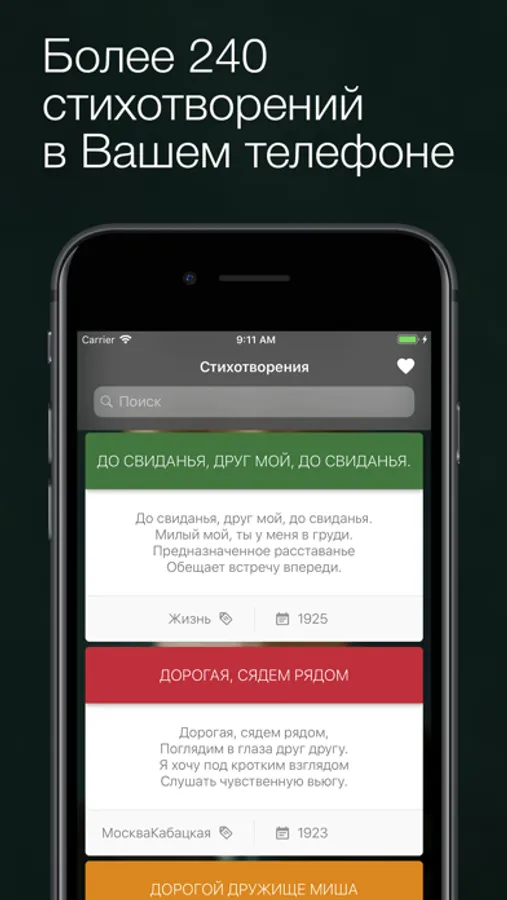 Сборник получилось сверхпростым и понятным, загружай сборник стихотворений на телефон и наслаждайтесь творчеством Сергея Есенина в любом месте и в любое время.